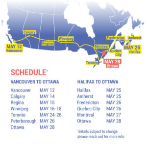 We take our inspiration from the many national cross-country caravans. From the unemployed men who rode the rails in 1919 to Ottawa demanding bread and jobs. The Abortion Caravan where hundreds of women gathered on Parliament Hill calling for women’s rights to abortion. The Action Canada Network Caravan that focused attention on NAFTA, which cost thousands of workers their jobs. Gladys Radek and Bernie Skundahl, Indigenous women, walked to Ottawa in the Walk4 Justice campaign forcing the government to set up the National Inquiry into Missing and Murdered Indigenous Women and Girls. In 2005, Gim Foon Wong’s cross-country motorcycle ride to Ottawa from the Redress Rally in Vancouver’s Chinatown exposing discrimination of early Chinese immigrants as part of the Chinese Head Tax movement